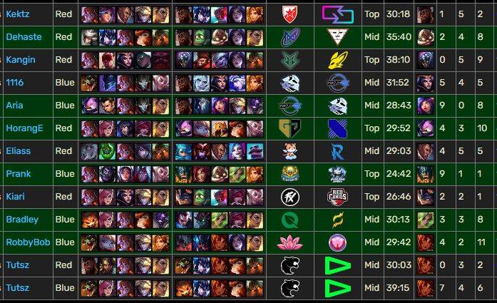 很快,在这几天的比赛中,有职业选手开始使用兔子女巫,甚至拿到了MVP。在8月4日的CBLOL季后赛中,中单选手Tutsz率先拿出了阿萝拉中单,第一局打出了7/4/6的战绩,第二局被针对后则是0/3/2,两局阿萝拉都无法拯救队伍,他们最终以2-3输给了LLL战队。这两局比赛的阿萝拉,都是携带了迅捷步伐作为基石符文,出装方面是面具时光帽子中娅。