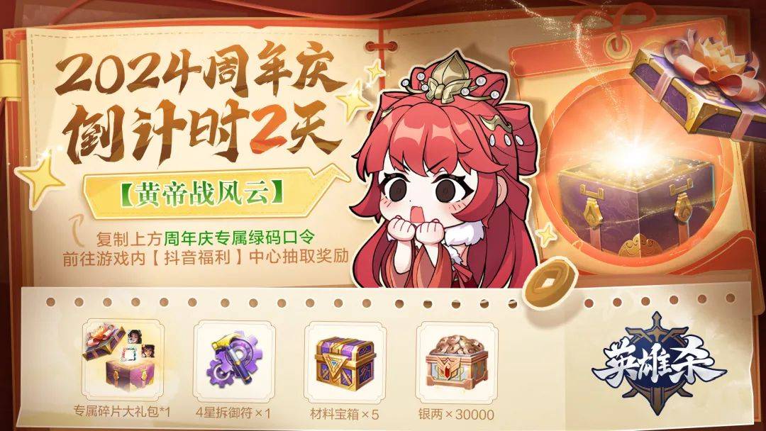 今日口令【黄帝战风云】,快复制口令前往游戏内进行抽奖吧!(绿码有效时间:8月1日-8月31日)