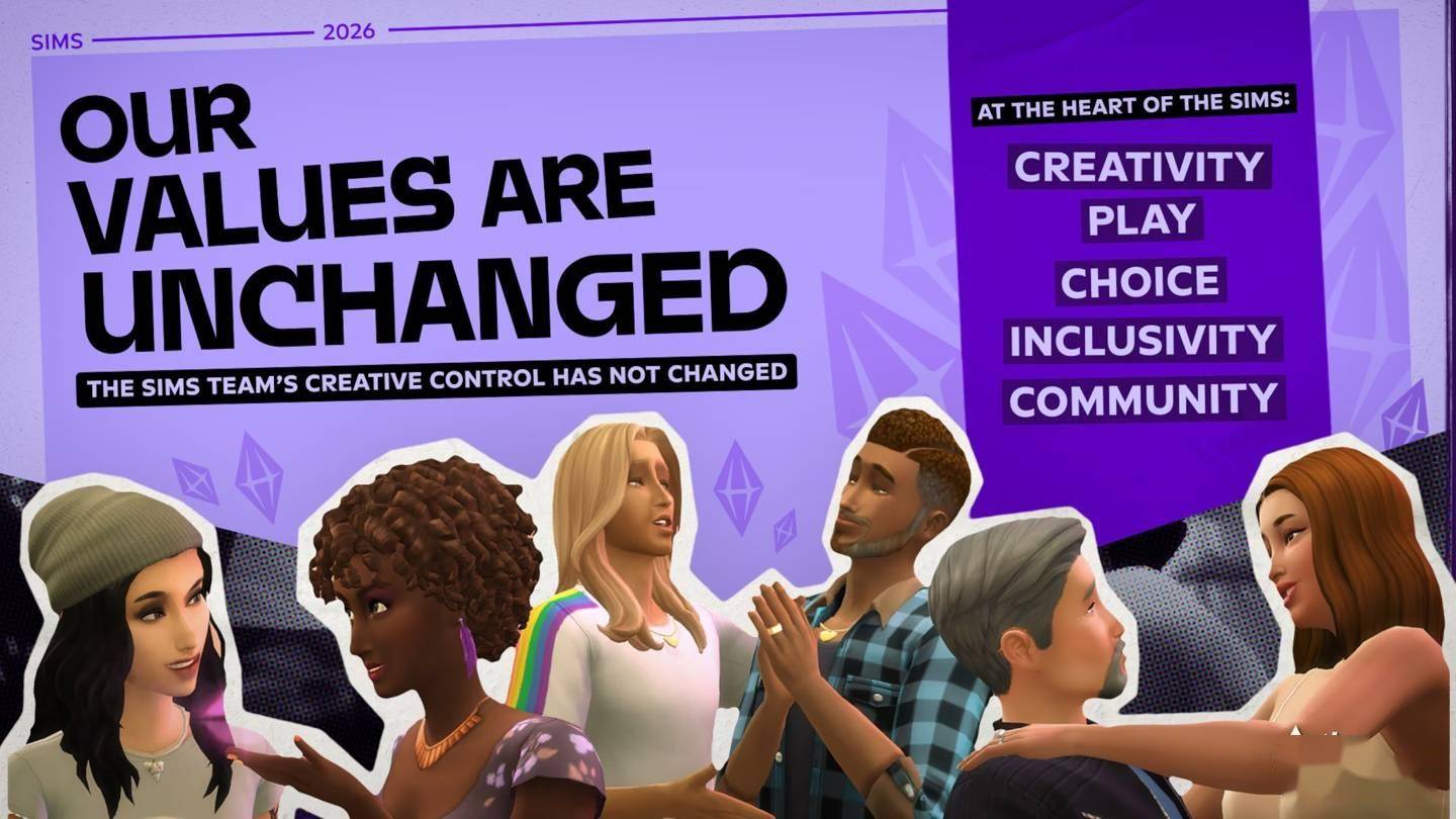 《模拟人生》系列游戏的创作权仍牢牢掌握在我们手中,并由包容、选择、创造力、社区等核心价值观引导,这些从未改变。