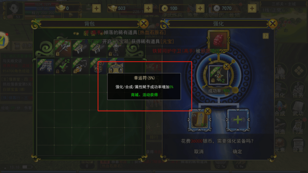 游戏中可能存在强化大师NPC或高手玩家,他们可以提供额外的成功率加成或强化建议。
