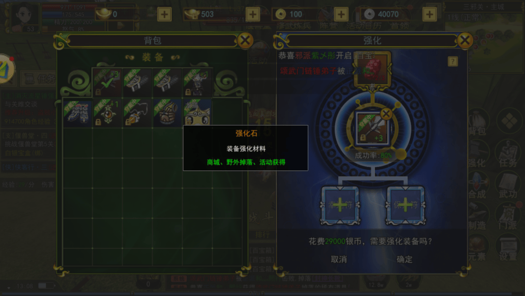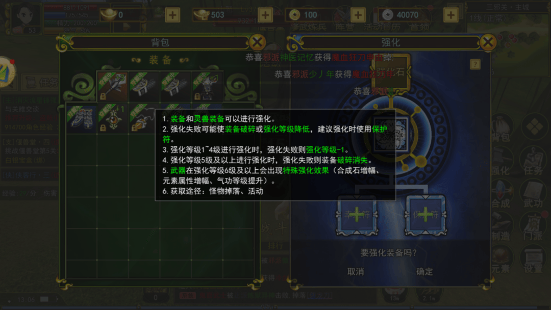 强化系统允许玩家通过消耗特定的资源(如强化石、金币等)来提升装备的基础属性(如攻击力、防御力等),从而提升角色的整体战斗力。