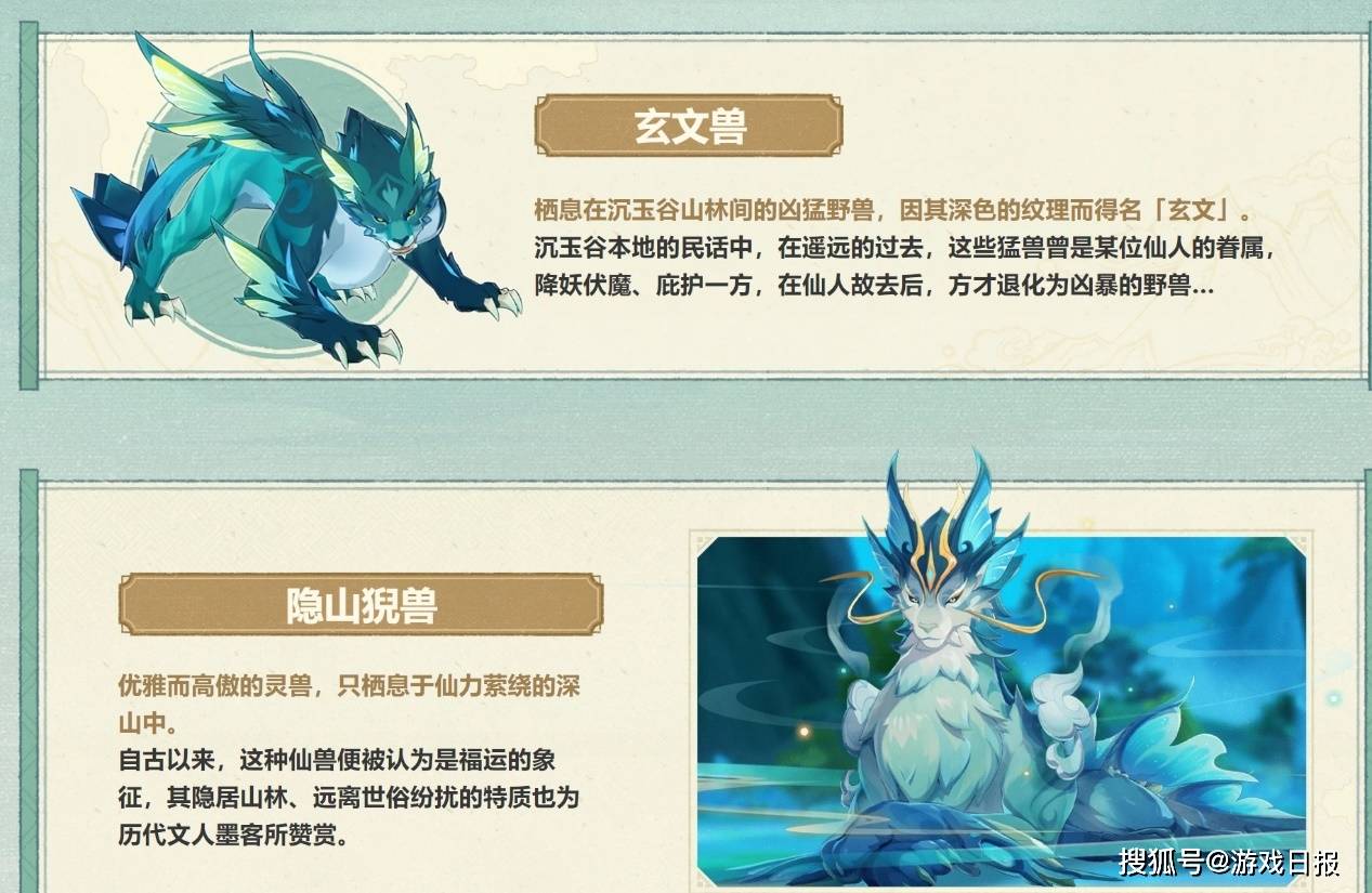 最后我们再来看一下两种新的敌人,他们是玄文兽和boss级敌人隐山猊兽,在沉玉逸闻页面特意记载了隐山猊兽可以同时驱使水元素与风元素进行战斗的特点,并为玩家提供了其中一种取得战斗优势的方法,即在其汇集水元素的仙力时使用冰元素攻击将其冻结,再通过碎冰或融化等反应将坚冰击碎,就可以让隐山猊兽进入较长的无法行动状态。相信即使是事前做了功课,隐山猊兽也能带给玩家们足够的挑战乐趣。