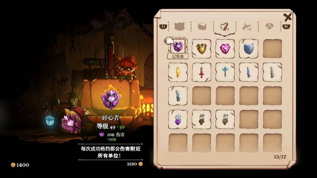 装备系统的优点与缺点都比较明显,优点是虽然在冒险过程中会获得重复的装备,但获得重复装备之后能够直接为已有的装备叠加当前获得装备的等级。但缺点是这些装备在铁匠铺进行强化的时候,在单个装备上投入的成本越高,这个装备就越难被其他装备迭代。如果要将金钱平摊给其他装备的话只是为了平摊而平摊,收益非常差。装备迭代成本变高也在限制游戏玩法的丰富程度,即使是去冰老鼠和火老鼠城堡,我都用我常用的奥术配装硬推过去(仍然很轻松)。