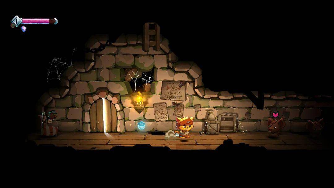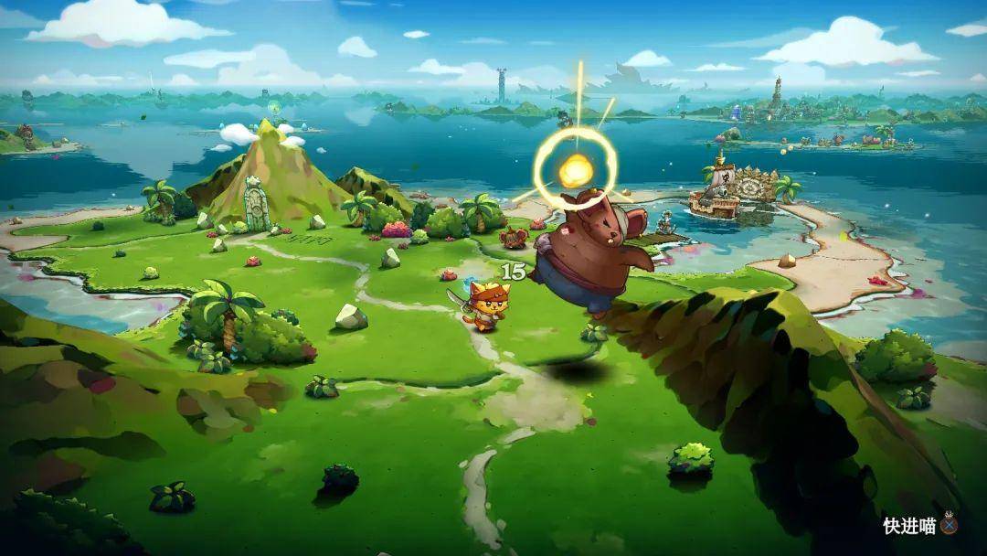 《猫咪斗恶龙3》沿袭了系列2.5D俯视角即时战斗的玩法,玩家将操控主角在大地图上与敌人进行战斗,上手门槛并不高,操作回馈也做得比较成熟,这一体验是比较加分的。玩家可以在近战武器与远程武器之间进行切换,根据敌人的配置与行动变化,近战/远程的搭配模式将大大影响玩家的游玩风格。比如说在冒险中可以获得三种近战武器,最基本的单手剑、攻速较快的爪与攻防一体的盾牌;远程武器有火枪与法杖,火枪设置了弹药数量,最后一发弹药会产生巨大的效果,但是得回满弹药才能再次发射。法杖具有属性伤害,不但没有弹药限制,闪避时还能带来相位瞬移效果。