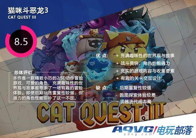 《猫咪斗恶龙3》沿袭了系列的优点,带来了一场由猫猫鼠鼠等可爱小动物带来的萌萌冒险谭,海盗主题也为故事和玩法带来了一丝新鲜感。虽然仍然存在美中不足的地方与改善空间,但其短小精悍的故事流程与充满趣味的本地联机模式都值得大家去体验一番!