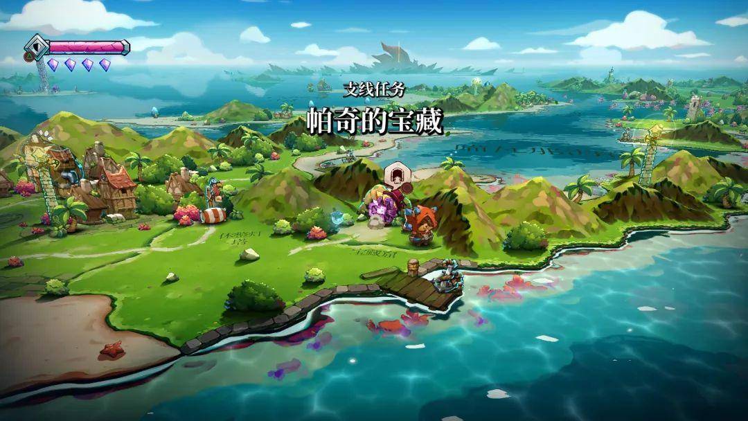 在以这片汪洋大海为舞台的世界中,玩家将驾驶自己的海盗船穿梭在群岛之间、找到和北极星的宝藏有关的线索。在世界中埋藏了许多探索要素,比如在看似单纯的一个草丛中可能会藏着一个宝箱,找到这些隐藏要素时也对探索时的好奇心带来了很强的正反馈。一些场景还能够进入独立的迷宫地牢,为探索带来一丝新鲜感。还有一些水晶解谜要素,条件各有不同,有些需要在限定时间内激活水晶、有些要求按顺序激活水晶,有些则是两个条件合起来,思考这些谜题的解法也很有意思。