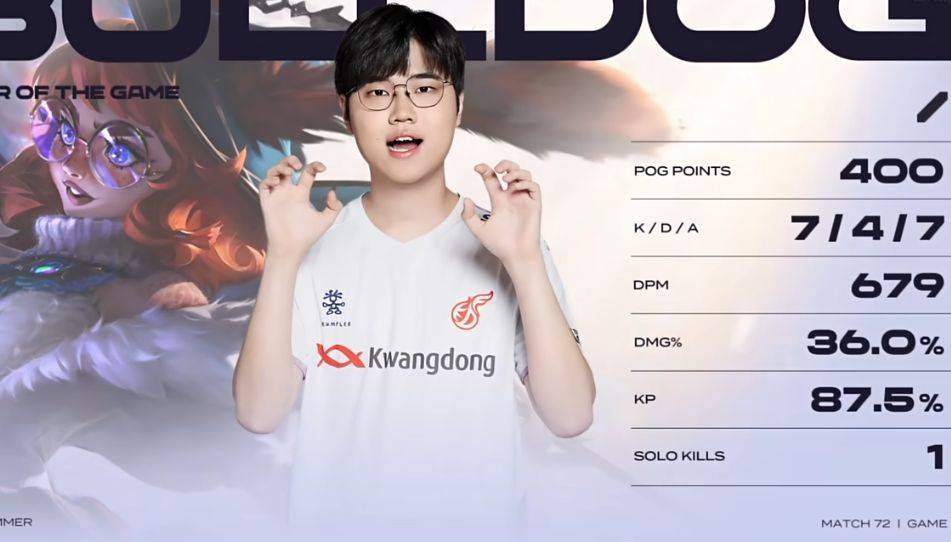 毫无疑问,7杀战绩的阿萝拉直接拿到比赛MVP,而且打出了36%的超高伤害占比。阿萝拉在四大赛区的首次登场,就以压倒性的优势拿到MVP,足以说明新英雄真的很强。老实说,sara不觉得Bulldog玩得非常秀,纯属是这个英雄很容易打出伤害,团战的分割战场作用太大了。这导致在第二局比赛中,KT自己蓝色方直接禁掉了阿萝拉,阻止对手再次使用这个英雄。最终,KT以0-2输给排名靠后的KDF。