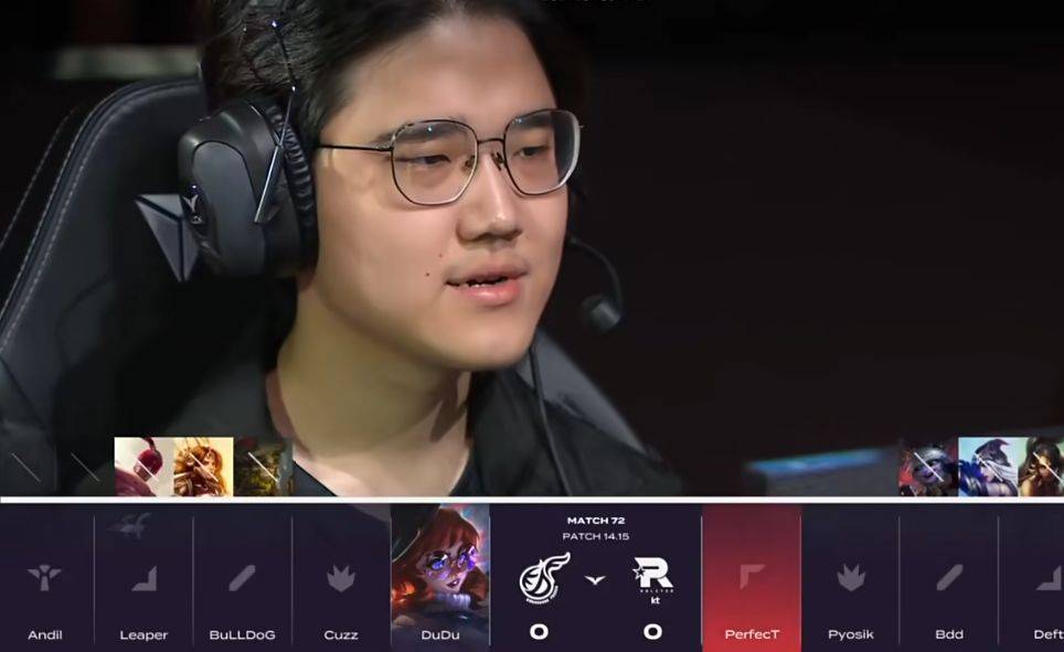 不过KT在比赛中期仍然掌握比赛主动权,拥有小龙和经济上的领先。直到在23分钟的团战,阿萝拉大招留人击杀婕拉,队伍打赢团战后拿到大龙,KDF逐渐反超经济。在游戏后期时,Deft和Pyosik完全无法在团战中活下来,阿萝拉交出大招就能强切后排,婕拉被打成0-4,女枪被打成1-6,KT自然是输掉了比赛。在这场比赛中,我们可以看出阿萝拉对于无位移英雄的压制力,远超于妮蔻这种团控法师。