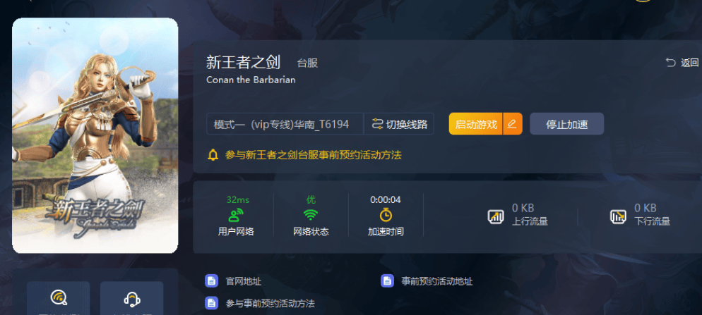 由于新王者之剑台服的服务器不在大陆境内,您可以使用斧牛加速工具搜索“新王者之剑”,选择台服并启动加速。
