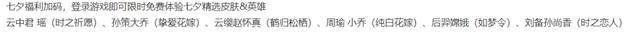 8月9日至8月11日,为期3天的时间,可以在排位,匹配和巅峰赛里,免费使用过往的七夕限定皮肤。