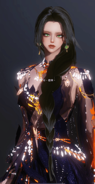 如果你的角色是黑皮辣妹,那么不妨试试博主@·宿傘·的染色,经典的橙紫配色能更好地凸显女性角色的气质,精致的流苏配饰搭配乌黑的麻花辫马尾可以说是相当惊艳,搭配碧绿色的双眸宛如异域的舞姬让人忍不住为之侧目。