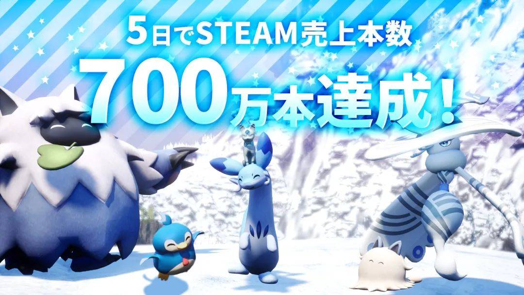 《幻兽帕鲁》在发售24小时内销量就突破了200万,周一这款游戏宣布自己在发售3天的时候内,销量超过了500万。刚才,《幻兽帕鲁》官推表示游戏在发售5天的时间内,总销量已经突破了700万套。