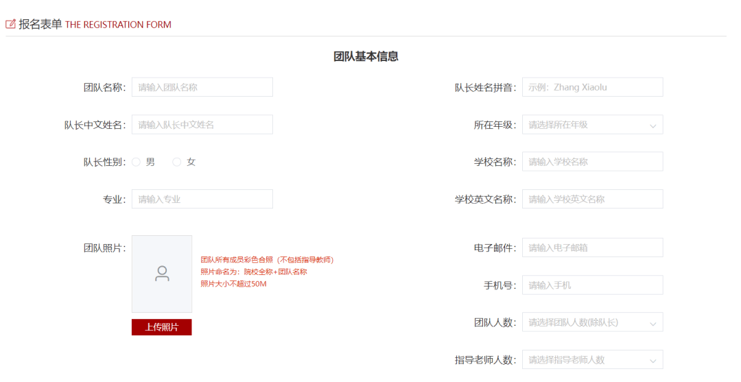 3. 团队队长根据提示填写团队成员信息,并上传作品(团队成员请勿重复报名);团队成员人数(除队长)不得少于1人,不得超过4人。