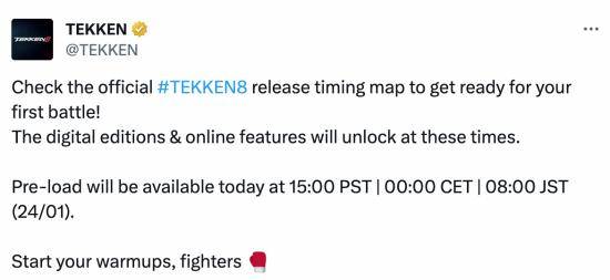 万代南梦宫公布《铁拳8》全球发布时间,游戏预载现已开启,将于北京时间明天(26日)早7点正式解锁,已预购玩家可以预载等待解锁。