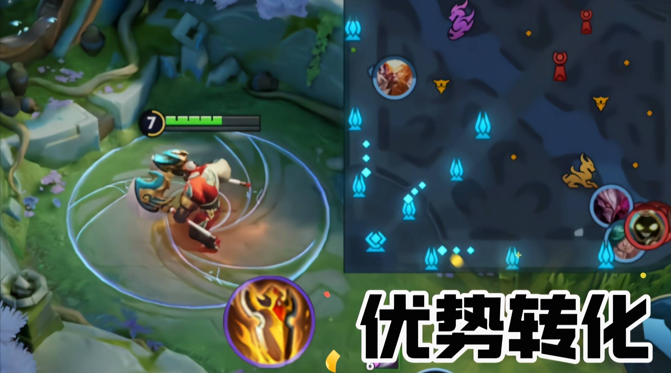 同时,程咬金还可以利用前期的这种无解打法,来持续地扩大优势,只要发育路不脱节,程咬金就可以凭借惩击的优先权,以及三技能的回血抗压,来持续的控制对抗路的空间之灵,在四分钟这个节点,打出高额的经济。