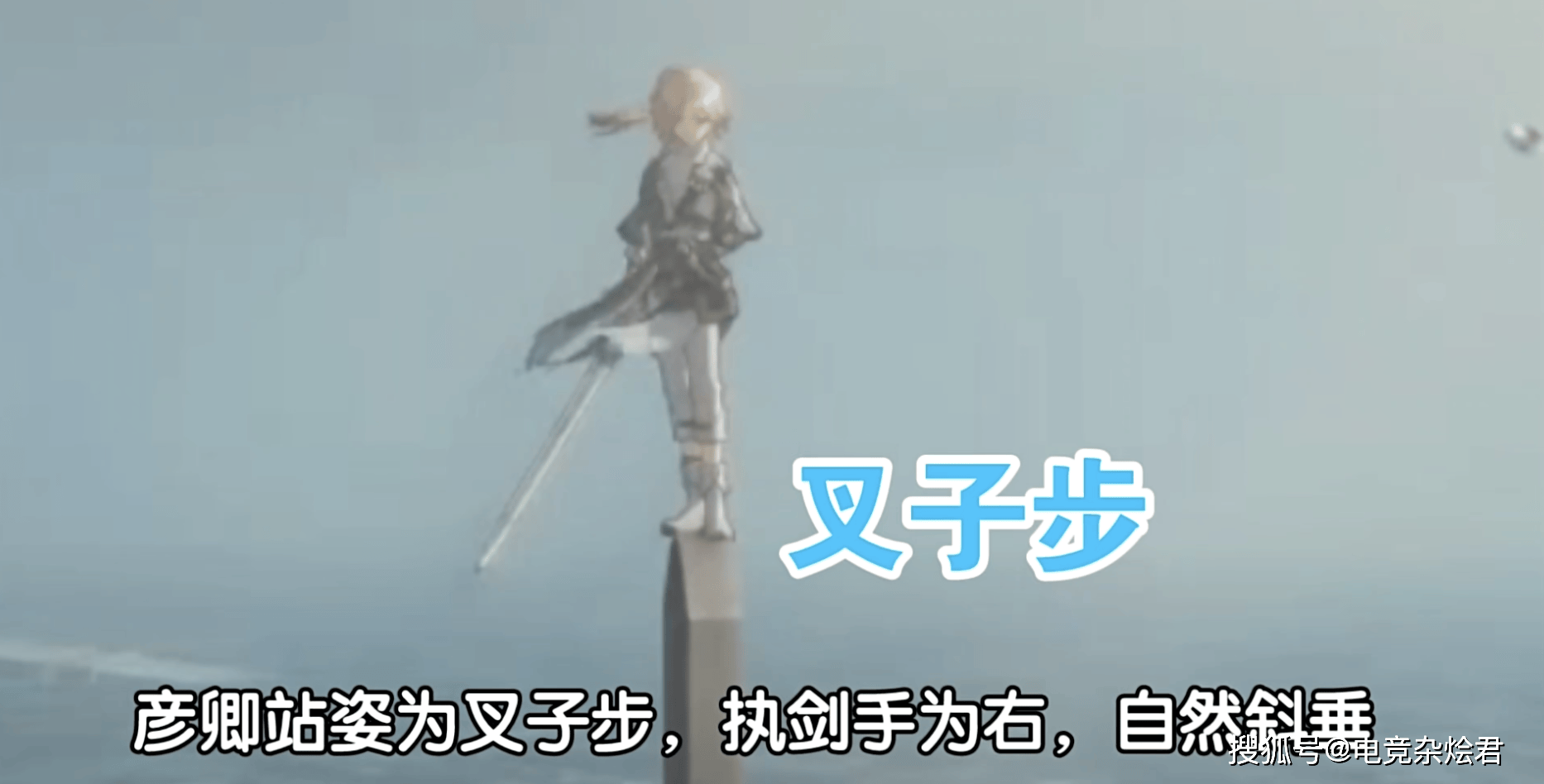 比如就两人对决开始前的站姿也是有讲究的,彦卿的站姿是叉子步,右手执剑,自然斜垂着,这是一种依势而动的站姿,这与彦卿后面在对决中防守为主,只展现飘逸的身法是呼应上的。