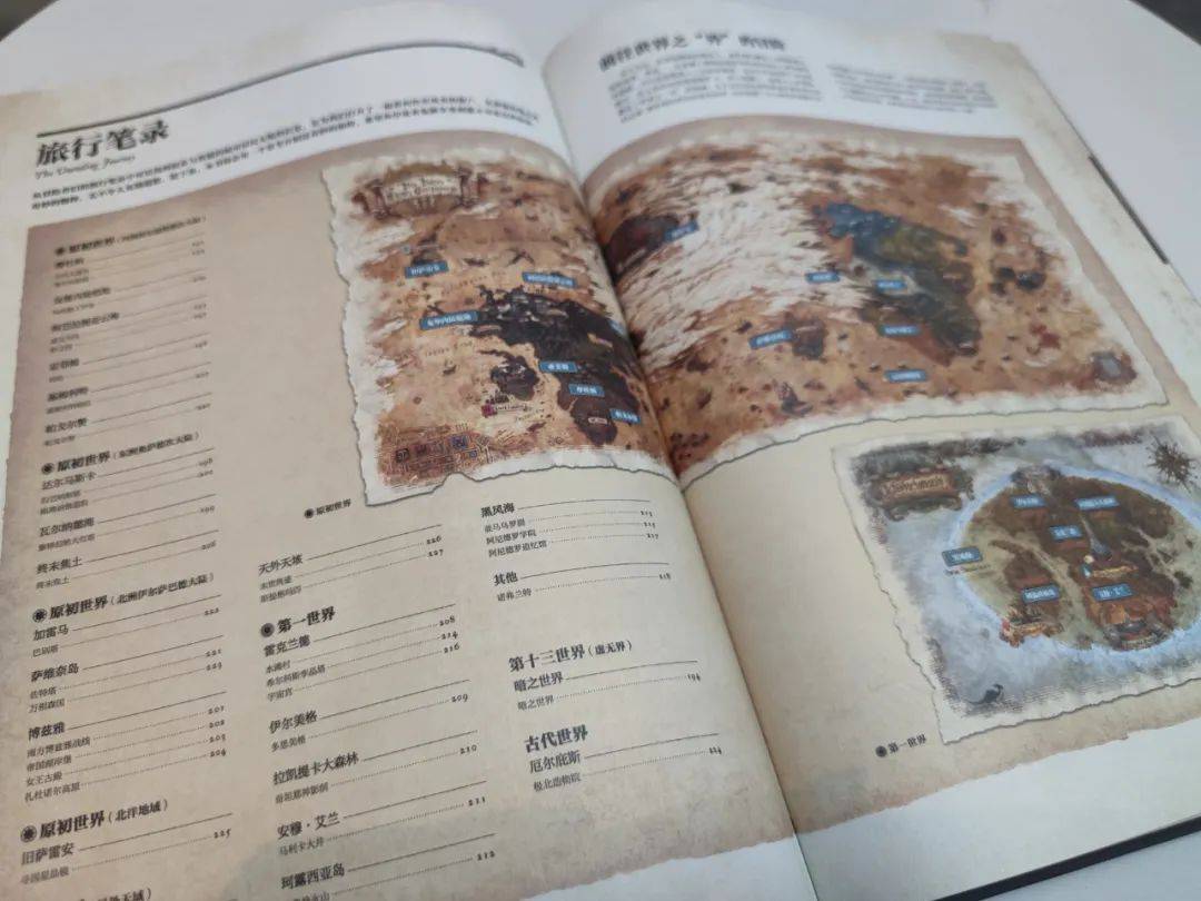 后面的板块视野扩展得更为明显直接。设定集用“旅行笔录”代替了第二本的“三大洲游记”,介绍了那些与多重世界、古代历史有着千丝万缕联系的副本。过渡版本的一些支线内容也在其中,比如影之国、博兹雅、水晶塔以及后来被玩家称作蹦迪副本的孪晶塔。