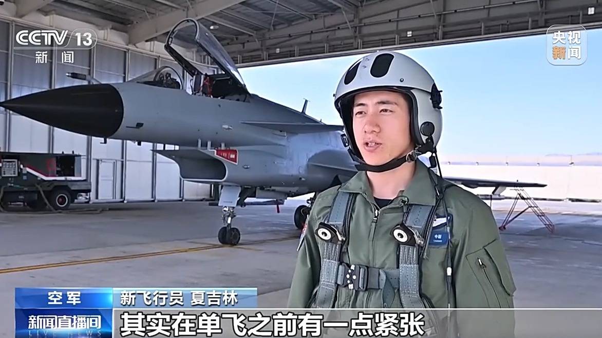 新飞行员 夏吉林:我对于这次的单飞质量比较满意,其实在单飞之前有一点紧张,现在顺利完成了单飞,下一步我将不断提高技战术水平,早日完成改装,加入战斗序列。