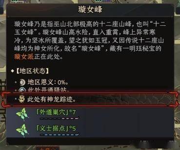 神龙盘踞的地区,虽然资源异常丰富,却有额外的特殊效果。太吾身在其中,若无“蛟鳞衣”加护,则会对自身造成额外伤害。