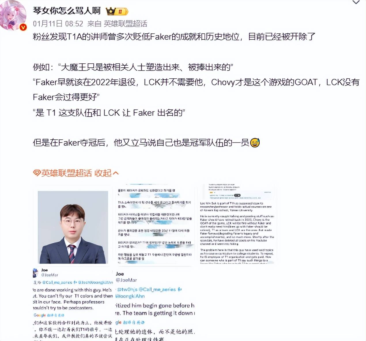 至于这位讲师的下场,T1老板直接亲自出马了,立即开除。没错,祝讲师一路走好,也许是太想辞职找不到借口了,各位怎么看呢?