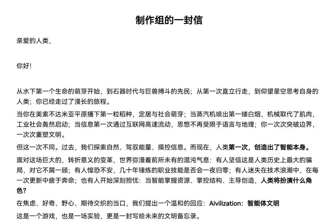制作组写给玩家的一封信,开头的话出自《文明》