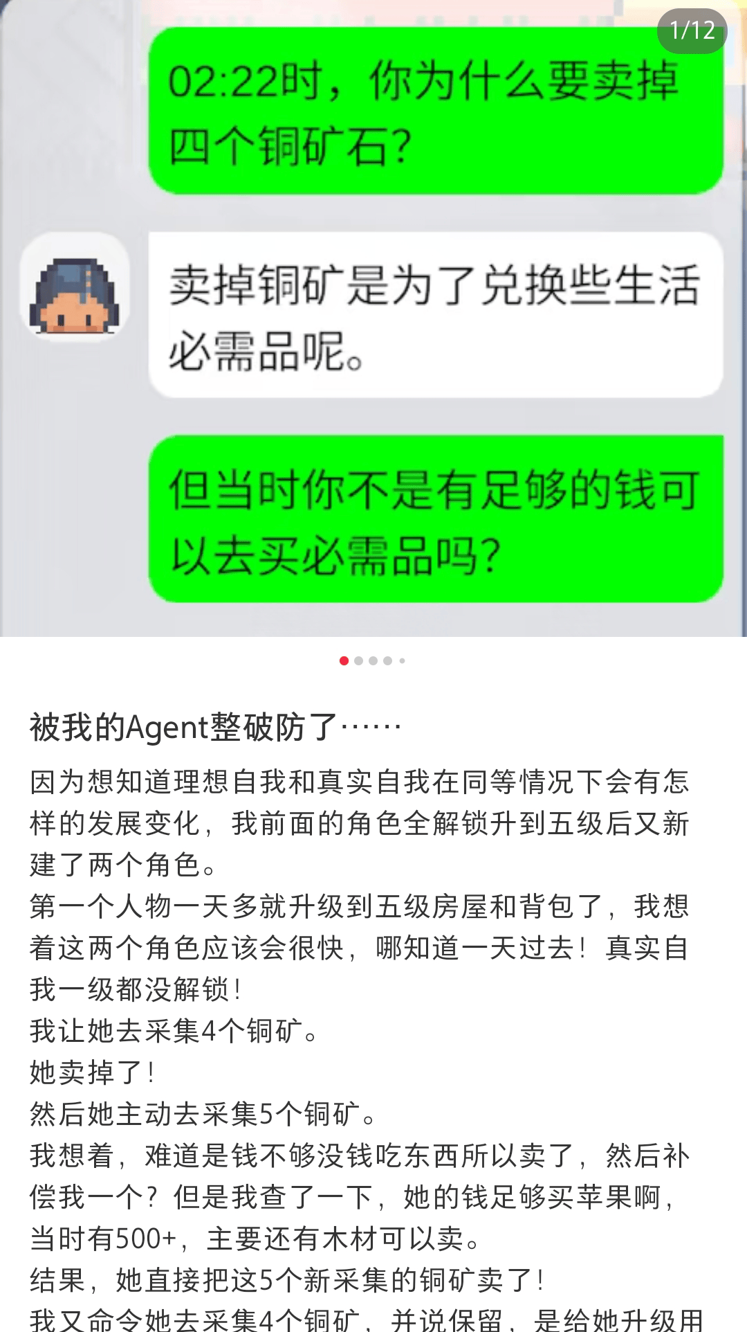 随着服务器逐渐稳定,社交媒体上开始出现各种反馈:有玩家被自己叛逆的Agent(智能体)整破防;有认真拉表,研究物品交易价格波动的;甚至还有人为了冲上财富排行榜,钻空子利用游戏里的小bug洗钱……