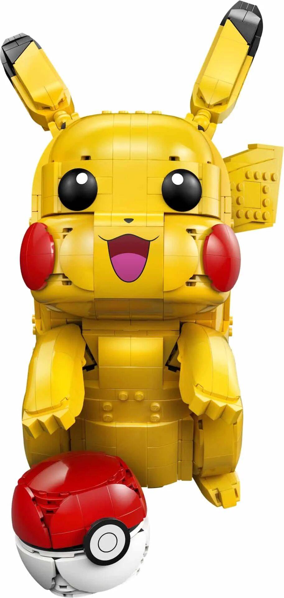 该套装由皮卡丘本体与一个可开启的精灵球组成,可独立展示,也可组合放置在闪电造型底座上。