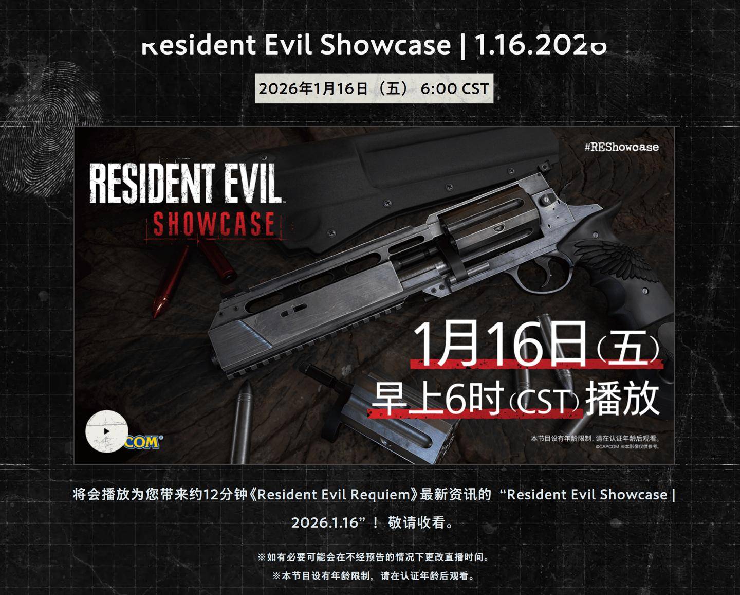 官方表示,本次展示会时长约 12 分钟,将带来《生化危机:安魂曲》的实机演示以及新情报。