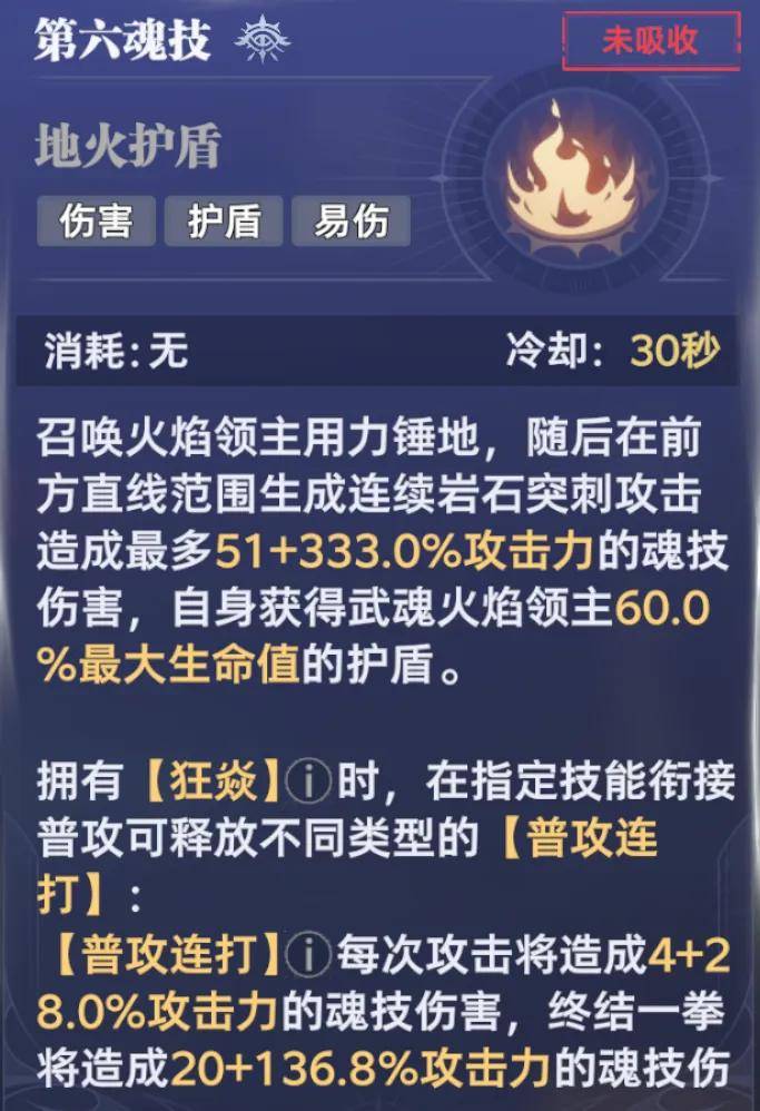 然后焱的6魂技目前维一认为更多的运用就是在用了4奥义之后的一段双方都不能切换武魂的时间,我们的焱就能用这个魂技来接普攻连打来干出不低的伤害......