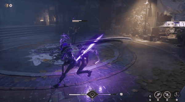 主角踩过积水路面时,脚底产生的涟漪是跟随脚步落点,且伴随溅射粒子。急转弯时,鞋底与石板路摩擦,并没有产生滑步现象,惯性处理得当。