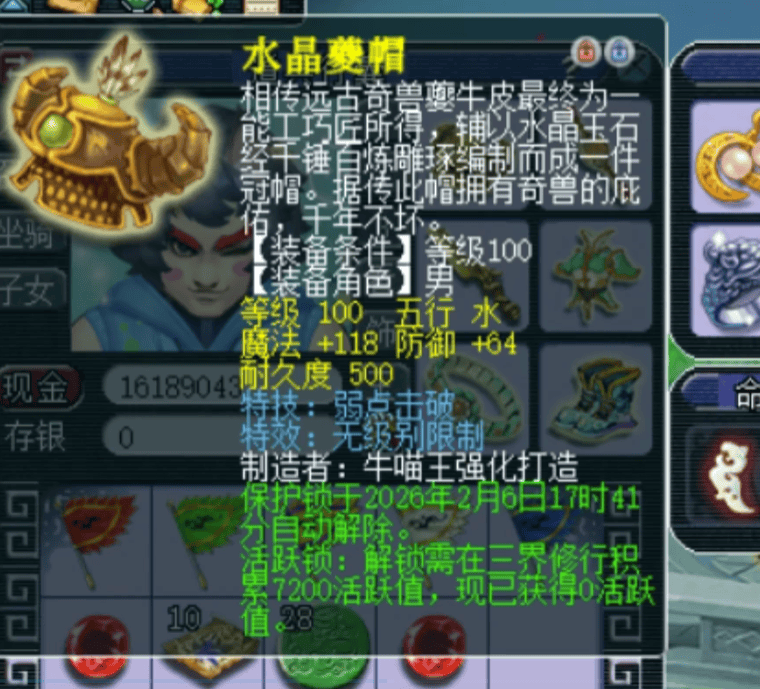 近期,一位幸运玩家在鉴定100级装备时,喜获一顶“逆天双蓝字”头盔。它不仅拥有无级别这一神级蓝字,可镶嵌高锻玛瑙以提升伤害属性,更携带了物理系实用特技“弱点击破”。加之当前版本花果山三丹经脉表现突出,弱点特技的价值也随之攀升,使得这顶头盔成为神威大佬竞相争夺的焦点。