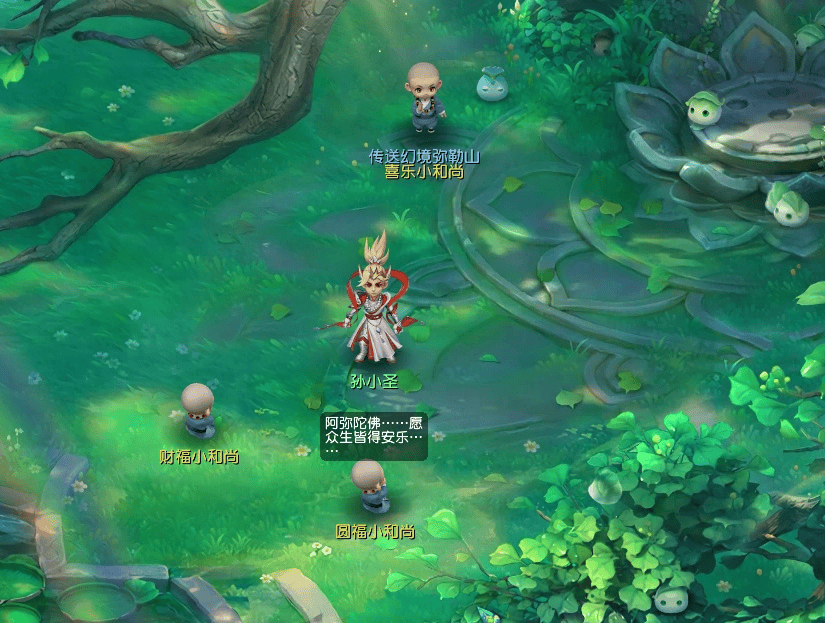 在该场景内,除师傅外,还有五位造型可爱的小和尚——圆福、安福、寿福、财福、善福。他们之间设有一套彩蛋式的值日安排,每个游戏日(对应现实30分钟)都会由其中一位小和尚负责当天的值日工作。
