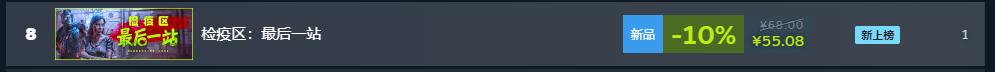 近期,在Steam热销榜上,一款名为《检疫区:最后一站》的独立游戏登上了榜单第8的位置。