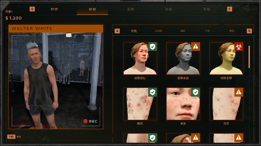 其中游戏核心玩法是对幸存者的检查,玩家开始手持检测仪,可以透过幸存者的衣物,观察他们的皮肤状况。根据他们自身的情况来判断是否感染,分别送去观察区、收容区、清除区进行处置。