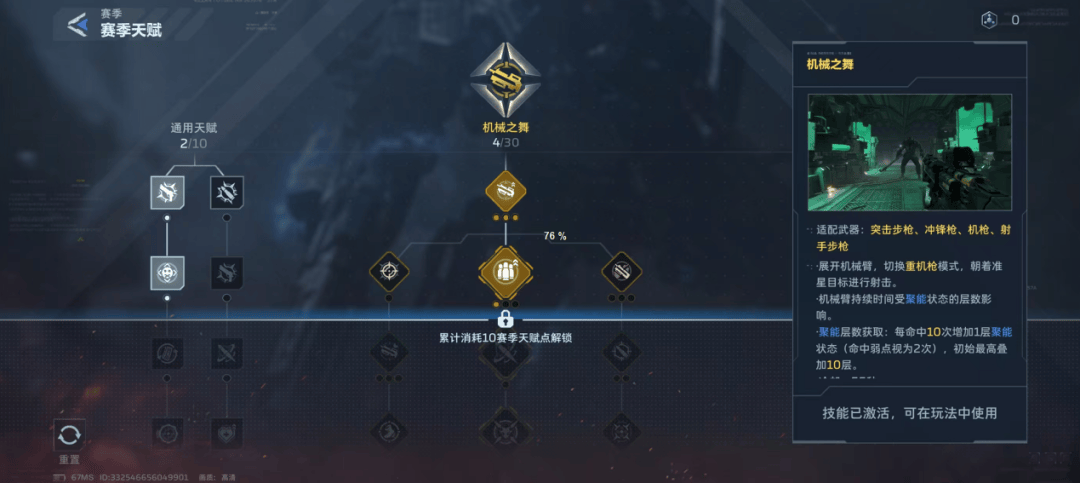 赛季内容中,武器的赛季插件通过不同玩法刷取,一把枪械可以装4个插件,每个插件有不同的增益。同时推进赛季主线可以获取天赋点,根据自身意愿选择性点亮天赋树。不同武器、插件以及天赋点搭配供玩家进行不同流派构筑(BD)。