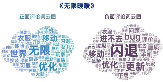 注:正面评论为用户评分4~5的评论,负面评论为用户评分1~3的评论;图中内容为单词筛选后呈现结果。