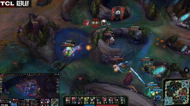 TT的上野开局拿到一血,两队一直平稳发育,一直到第二组巢虫才爆发团战,JDG阻止了TT六虫的想法,并将HOYA加里奥击杀。