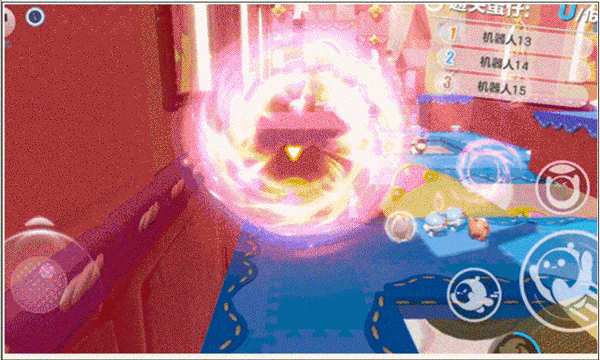 再比如在“玩具城堡”地图中,玩家需要主要考虑的同样不再只是如何规避障碍物,而是如何高效利用各种道具,阻碍竞争对手或是为自己创造前进空间,诸如加速带、超级弹板、风圈等大量非常规道具的随机刷新,大大提升了地图复玩性,当你临近终点时却迎头撞上一个对手部署的反向加速带,那种哭笑不得的画面感无疑正体现了派对游戏的快乐本质。