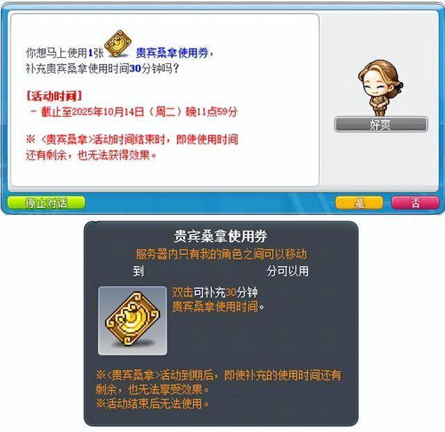 享受贵宾桑拿,需要使用3000抵用券购可购买1小时的贵宾桑拿时间,在桑拿室中获取大量经验值。在贵宾桑拿室最下方可以看到剩余使用时间。使用贵宾桑拿使用券可以补充30分钟使用时间。