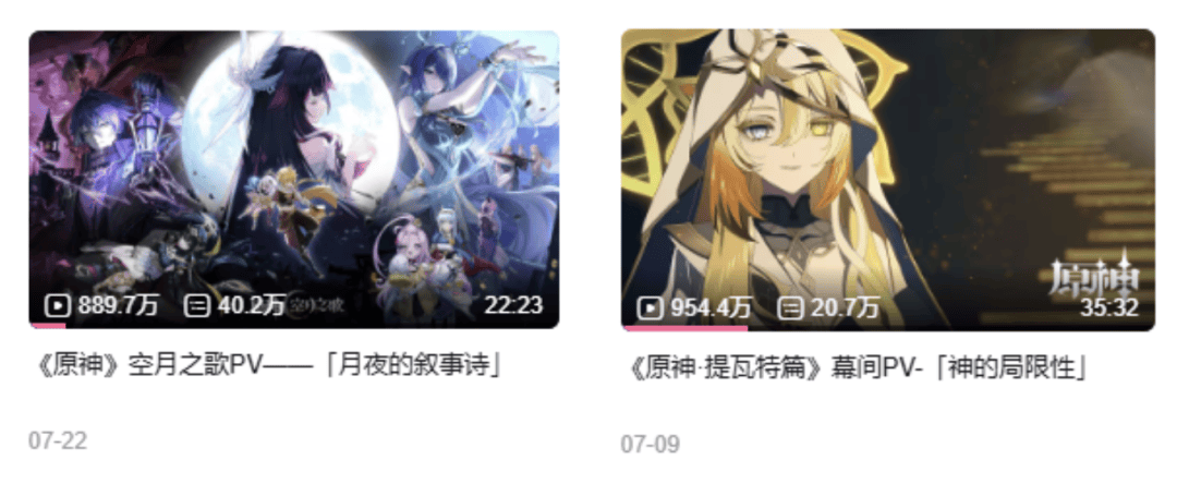 从结果来看,这个内容方向掀起了极为夸张的期待值和讨论度。在我的印象中,两则和挪德卡莱相关的PV,虽然远非《原神》在B站上播放量最高的视频,但弹幕量应该能够排得上Top 1和Top 4。