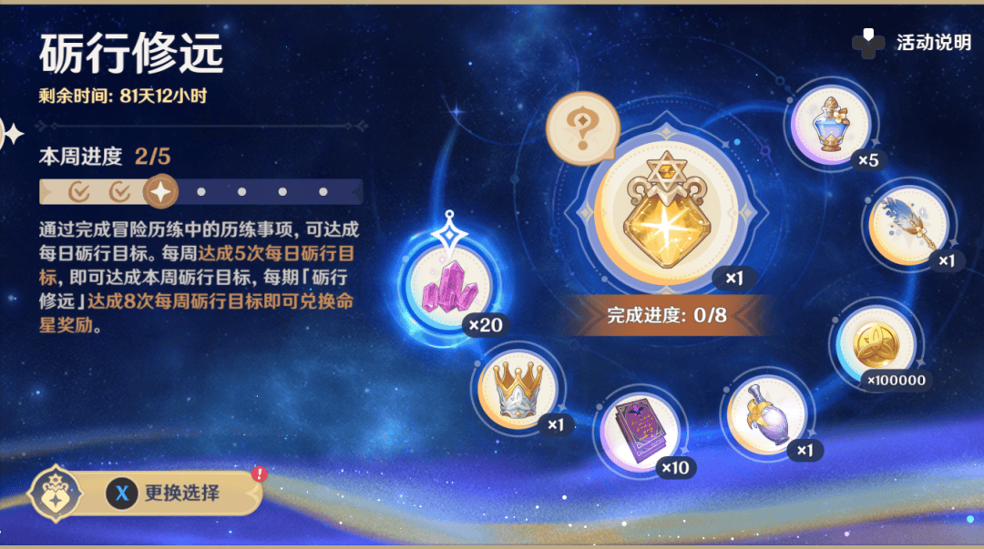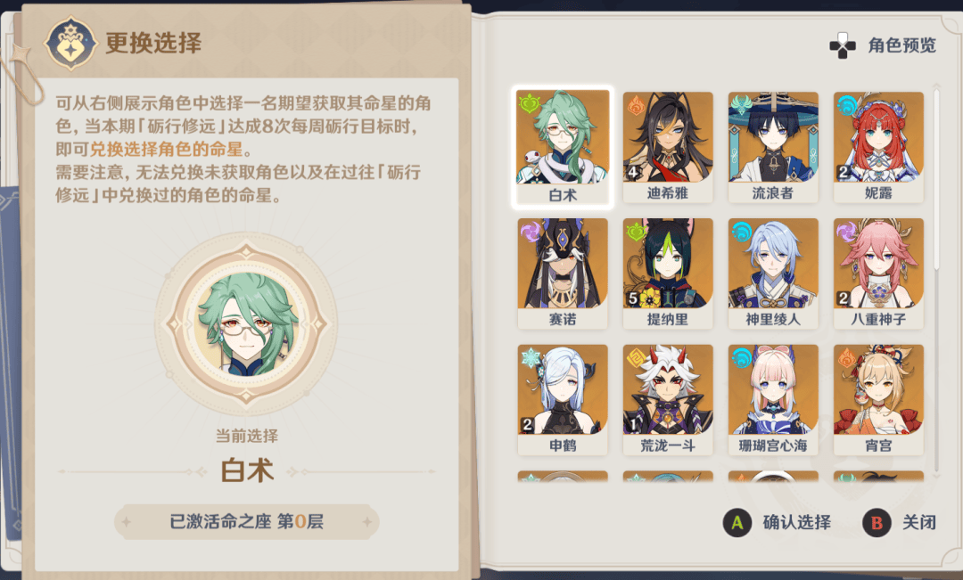 先说福利。除了解锁新系统、探索新内容的额外原石,以及周年庆送出的一名常驻5星角色之外,未来一年只要玩家完成活跃目标,就能获得4个已拥有角色的命座,其中还包括不少限定角色。