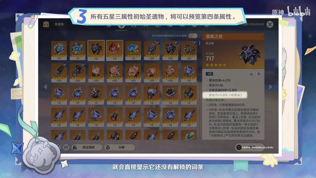 另外在以前,很多圣遗物(装备)要经过一次强化操作,才能显示出第四个词条。但从今往后,这个词条可以直接预览,让玩家能更快决定要不要消耗资源强化。在我印象里,这在米哈游的产品中还是第一次——《原神》正在重新变得先进。
