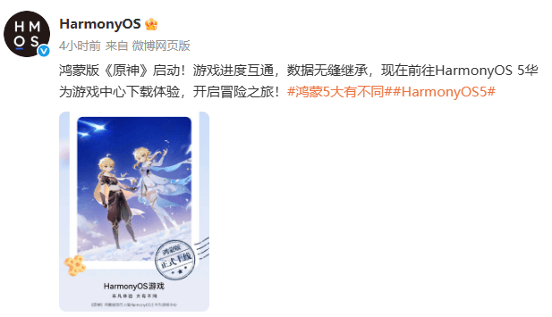 同时,《原神》还在更新之后发布了鸿蒙版本,上架了HarmonyOS 5华为游戏中心。这也意味着这款上线5年的游戏,依旧在扩大自己的用户群体。