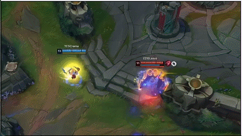 第二局比赛EDG开局抓出了JKL的闪现,但TES率先进攻上路越塔拿下一血,EDG选择镜像地针对下路,结果这波越塔宣告失败,Crème小炮赶来,一套精准的伤害计算完成击杀,TES反打出0换2,再次陷入巨大劣势。