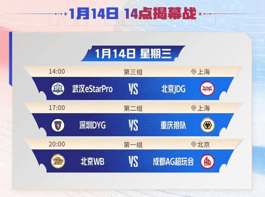 1月14日14:00揭幕战武汉eStarPro vs 北京JDG