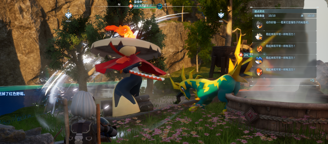 因此,游戏的玩法主要还是《方舟:生存进化》、《异星工场》里那一套生存模拟和工业规划的基础,游戏的使用宝可梦进行决斗的要素,反而成了游戏中的添头。当然,它也在战斗玩法中加入了令人眼前一亮的想象力,是将怪物作为盾牌举起来抵挡攻击,还是塞进火箭筒发射出去,一圆“训练师”们和“宝可梦”并肩作战的愿望。