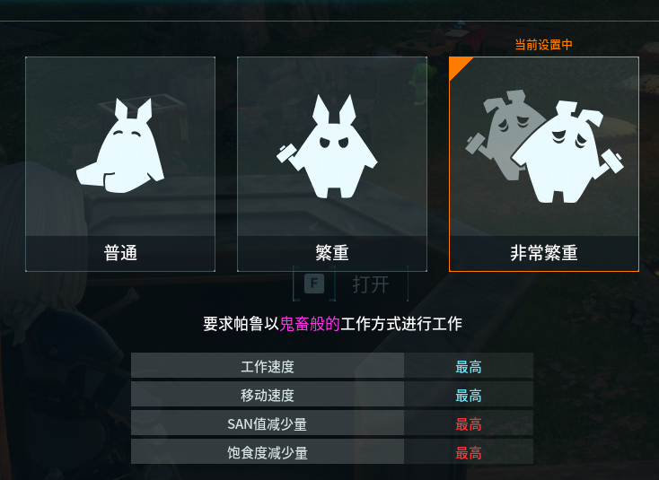 不同帕鲁工作的方式也完全不同,会喷水的帕鲁就该帮忙浇水种地,长手长脚自力更生,采摘和伐木帕鲁们自我实现,另外建房搭瓦、产奶剪毛、孵蛋炼药,都需要专人专事。玩家则可以在控制台上没发号施令,让帕鲁们更高强度地工作,为接下来的冒险做好后勤准备。