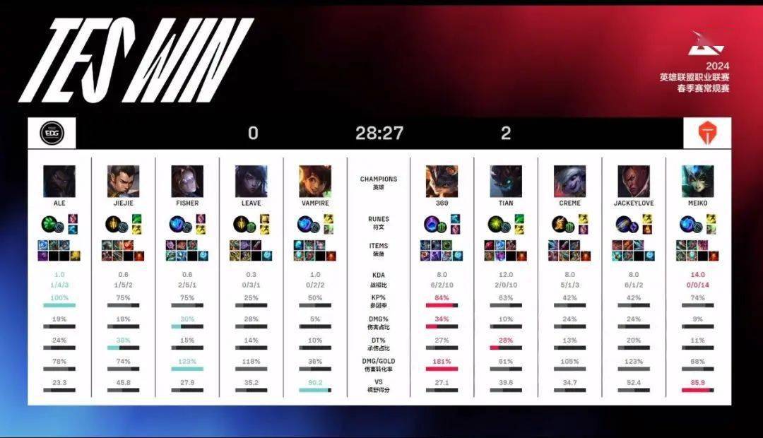 LPL职业联赛春季赛在昨天进行了三场比赛,其中有两场比赛都出现了暴打老东家的剧情,其中Meiko所在的TES战队轻松横扫EDG,拿下赛季首胜。