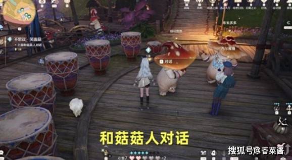 3、与菇菇人对话,再与珀可鲁鲁对话,注意对话内容:鼓高度从高到低编号 1~7