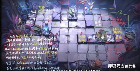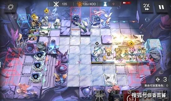 4.两个元核怪登场,左侧元核走到绿三角位置会被冻住,在图示阿米娅位置下术师。元核攻击近卫使其晕眩,此时在近卫左侧下奶盾挡住,近卫解除晕眩,和术师一起打掉元核。右侧的元核初雪会解决掉。